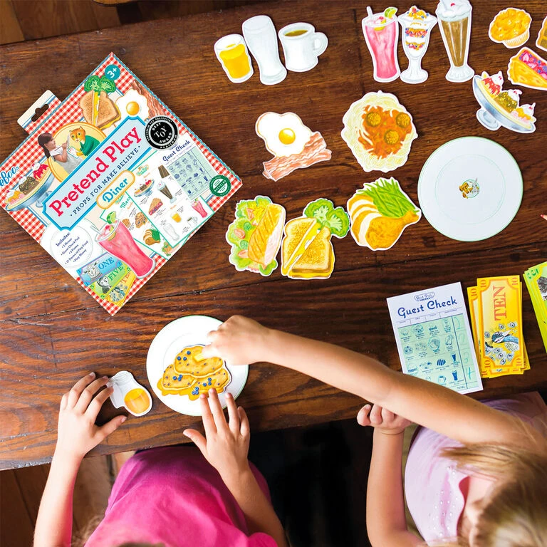 Cook up some fun for kids and promote creativity and interactive play with this Best Pals Diner Pretend Play Set. Whether they want to cook, take food orders or deliver the check, this set has everything they need to keep their entrepreneurial spirit going. A winner of the Oppenheim Platinum Award and artist illustrated by Holly Berry, this fun pretend play set will encourage little imaginations to soar!