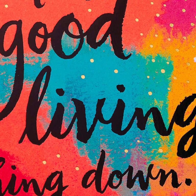 Multicolor lettering on white design: You’ve got some good ways about you…; …showing up for other people, doing what’s right and being the right kind of man, making everybody feel glad to know you. It’s all just your way. And it’s all good.