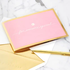 Pop-up love greeting card features a pale pink cover with a “for someone special” message, flower icon and a metallic gold foil border on the front. Simply open the card to reveal the 3D pop-up surprise inside—no assembly required: an intricate, laser-cut bouquet of pink and purple flowers with sparkly glitter accents and shimmering gold foil pops out. This beautiful card crafted from premium card stock is a work of art sure to be displayed all year long, making it an unforgettable way to celebrate Mother’s Day, her birthday or just to let a special friend or family member know how much she’s loved and appreciated—today and always. When open, this pop-up card lays flat for display; 3D pop-up inside measures approx. 5.25″ tall.