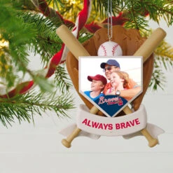 Root for the home team when you hang this Major League Baseball ornament on your Christmas tree. With team logo, baseball bats, a ball, home plate and mitt, this design has all the bases covered. Add a photo and personalized message to create a home-run gift to say thanks to a special coach, hold on to school or rec league team memories, or recognize an star player’s efforts.