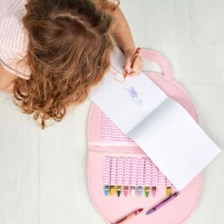 - Mud Pie rainbow felt folio contains crayons and drawing pad.